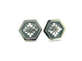 伝統文様シリーズの花菱亀甲ピアスです。六角形に角ばった形が、まさしく亀の甲羅を思わせる。