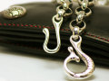 ふっくらとやわらかな印象のフック(大)に「流水と桜」文様を全体に彫りこみ、チェーンとなる部分は、シンプルな「桜」と「流水に桜」の2つの文様をつなげている。