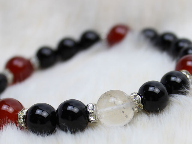 [ヒマラヤ産水晶:12mm レッドアゲート:12mm オニキス:10mm]